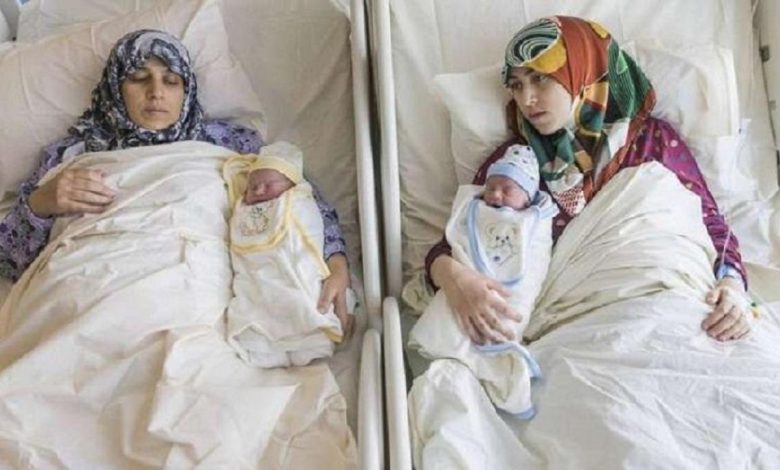 وفي التفاصيل : وضعت فاطمة بيرينجي 42 عاماً ، بنتها غادة بيرينجي 21 عاماً طفليهما في نفس اللحظة،