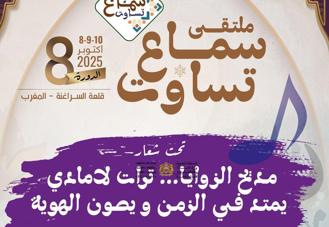 تعيش مدينة قلعة السراغنة على إيقاع روحاني فريد مع انطلاق فعاليات الدورة الثامنة لملتقى “سماع تساوت” للثقافة والفنون الصوفية، المنظم